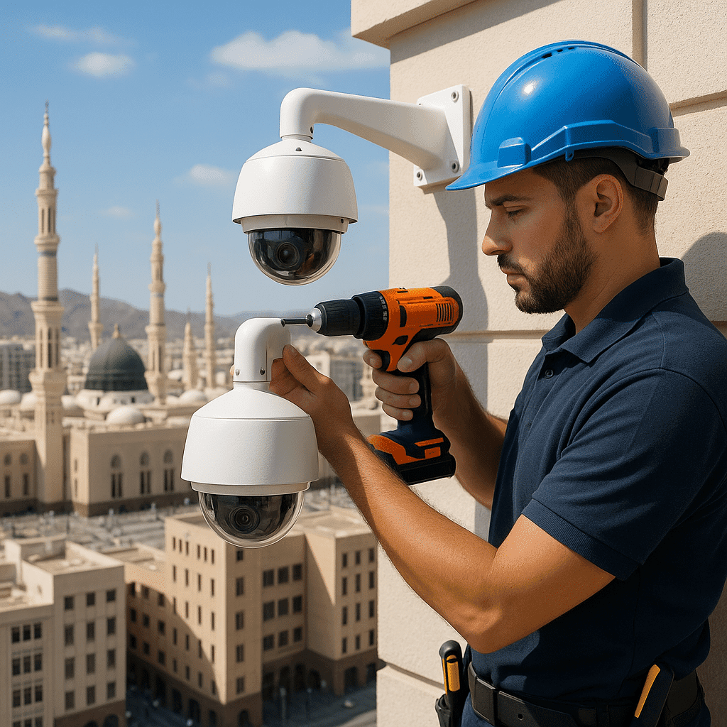 احصل على أفضل خدمات تركيب وصيانة كاميرات المراقبة بالمدينة المنورة مع ضمان حقيقي، أسعار تنافسية، دعم فني 24/7، وعروض مميزة للمنازل والشركات. فني، عامل، شركة، محل – كل الحلول بين يديك.